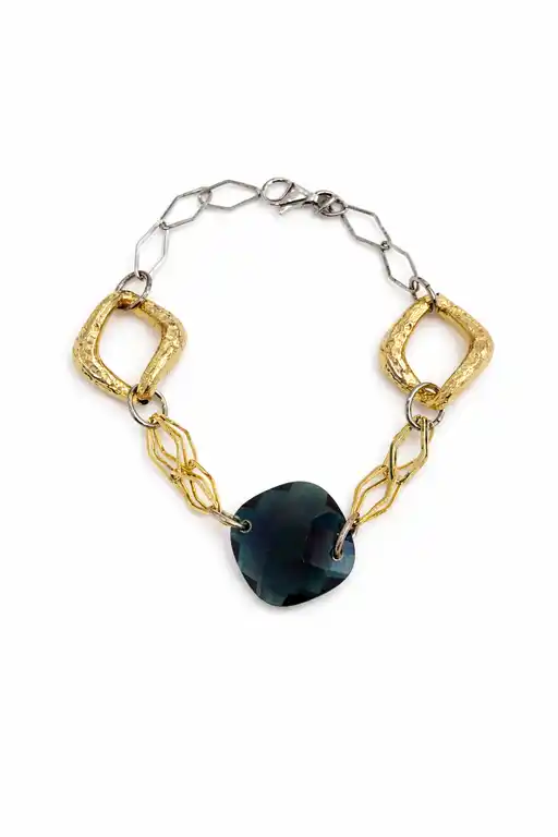 Βραχιόλι ασημένιο επιπλατινωμένο και επιχρυσωμένο με κρίκους με πετρά πράσινη στο κέντρο πολύ καλό κούμπωμα ασφάλειας Ένα υπέροχο βραχιόλι για να το φοράτε σε κάθε σας εμφάνιση.
