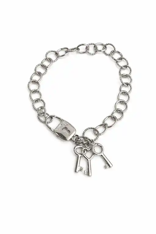 Βραχιόλι ασημένιο επιπλατινωμένο K14 με στοιχεία να κρέμονται και πολύ καλο κούμπωμα ασφαλείας  Ένα υπέροχο βραχιόλι για να το φοράτε σε κάθε σας εμφάνιση.