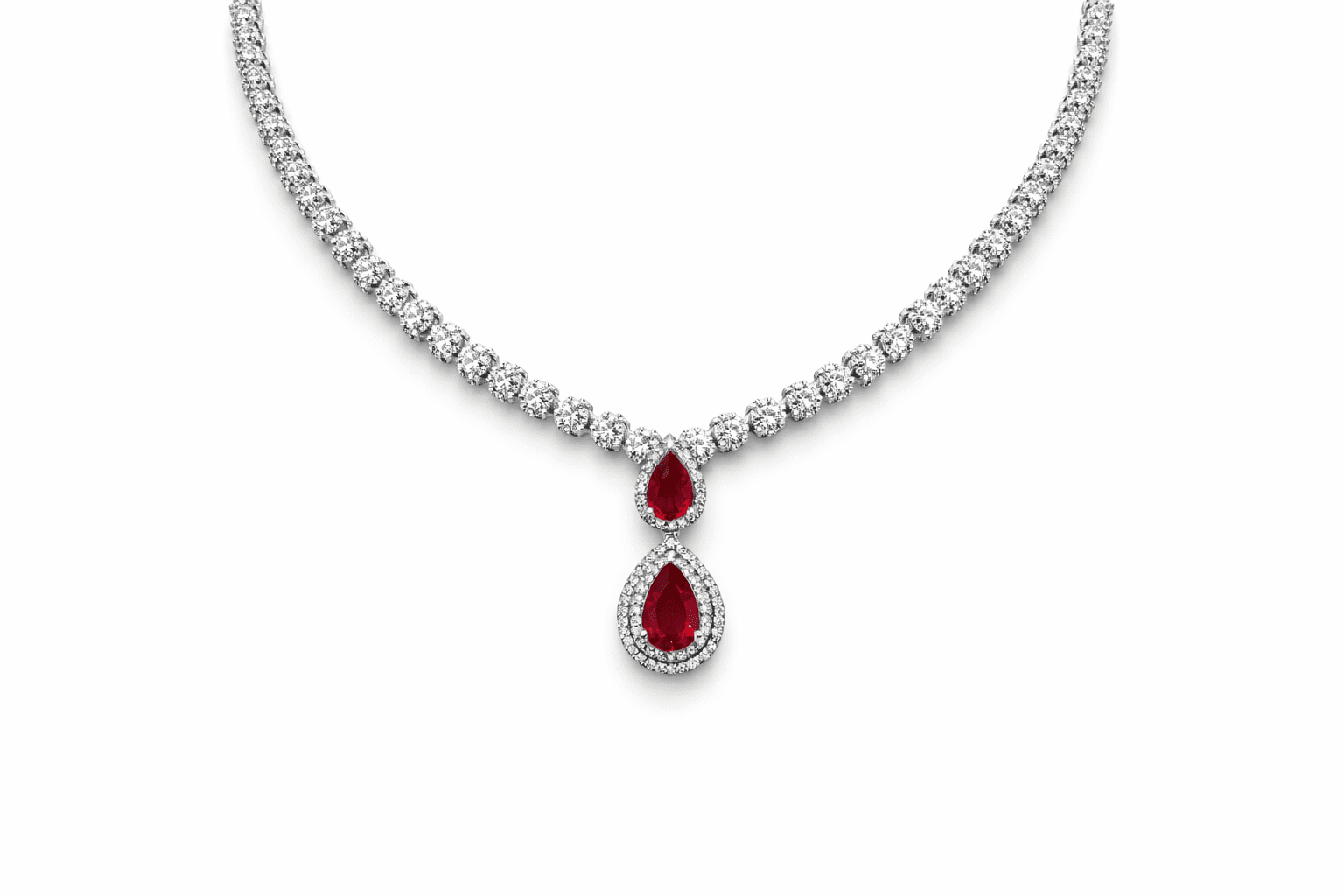 Ασημένιο κολιέ 925 επιπλατινωμένο Κ14 γεμάτο με λευκές πέτρες ζιργκόν και κοκκινες πέτρες ζιργκόν σε σχήμα δάκρυ. Οι πέτρες είναι καρφωτές ώστε να μη φεύγουν εύκολα. Ένα υπέροχο κόσμημα για να το φοράτε και να δένεται λάμψη στο στιλ σας με ασφαλές κούμπωμα στην αλυσίδα και προέκταση στην αλυσίδα για να το κουμπώνεται οπου θέλετε.
