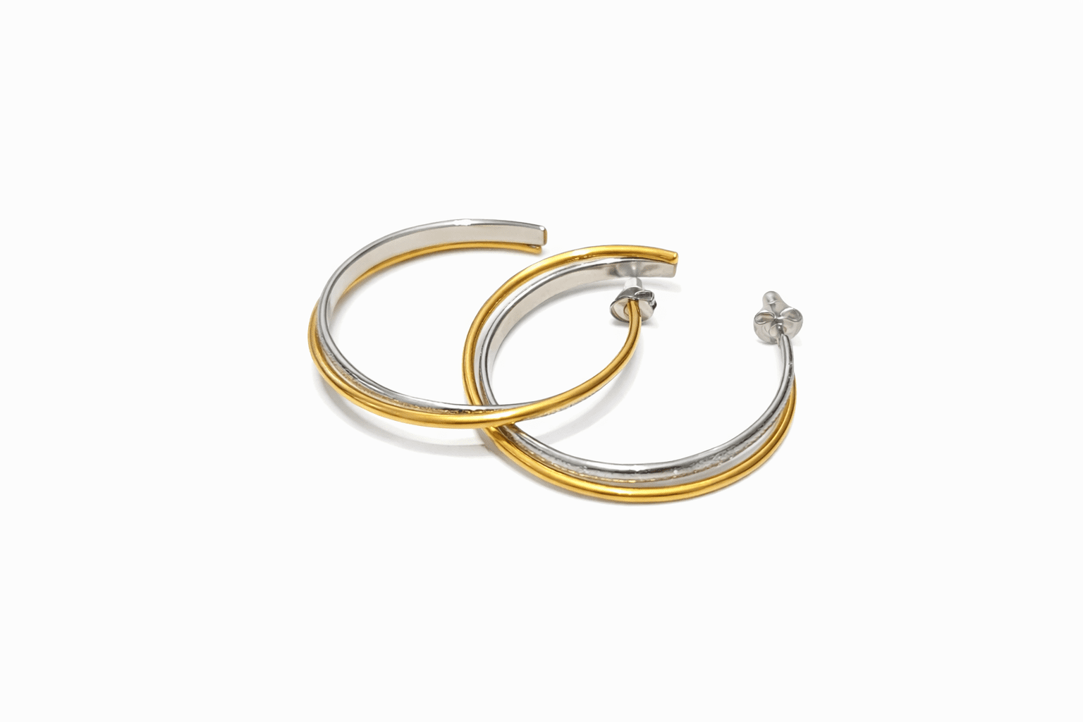 Σκουλαρίκια κρίκοι δίχρωμα σε ανοξείδωτο ατσάλι με επιπλατίνωνα και επιχρύσωμα κ14 υποαλλεργικο για να το φοράτε στη καθημερινότητα σας και κατάλληλο για ολες τις επιδερμίδες.