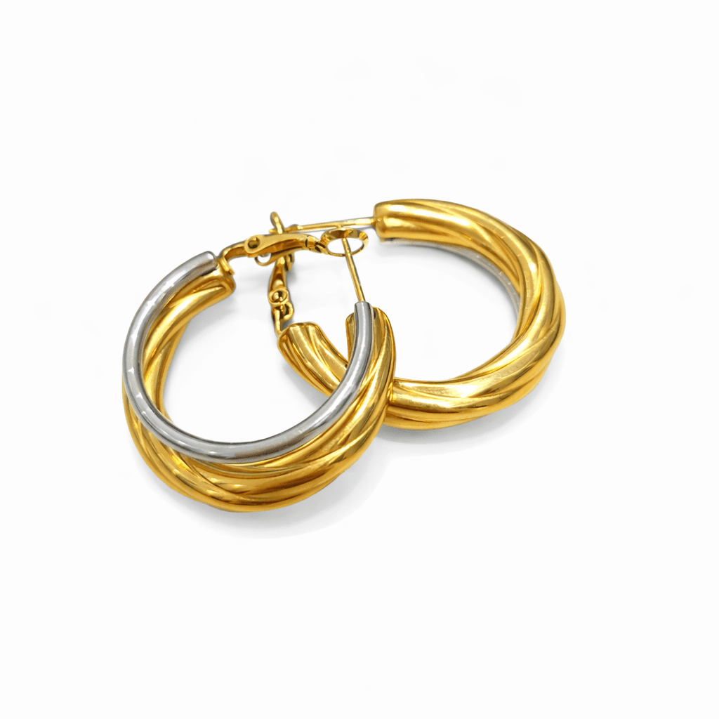 Σκουλαρίκια κρίκοι δίχρωμα σε ανοξείδωτο ατσάλι με επιπλατίνωνα και επιχρύσωμα κ14 υποαλλεργικα για να τα φοράτε στη καθημερινότητα σας και κατάλληλο για ολες τις επιδερμίδες.