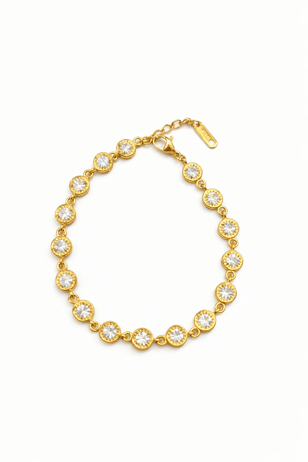 Βραχιόλι επιχρυσωμένο Κ14 με λευκές πέτρες ζιργκόν με προέκταση αλυσίδα επιχρυσωμένη στο τελείωμα για να το κουμπώνεται οσο θέλετε εσείς και με πολύ καλό κούμπωμα ασφάλειας. Ένα υπέροχο βραχιόλι για να το φοράτε σε κάθε σας εμφάνιση σε ανοξείδωτο ατσάλι υποαλλεργικο κατάλληλο για ολες τις επιδερμίδες.
