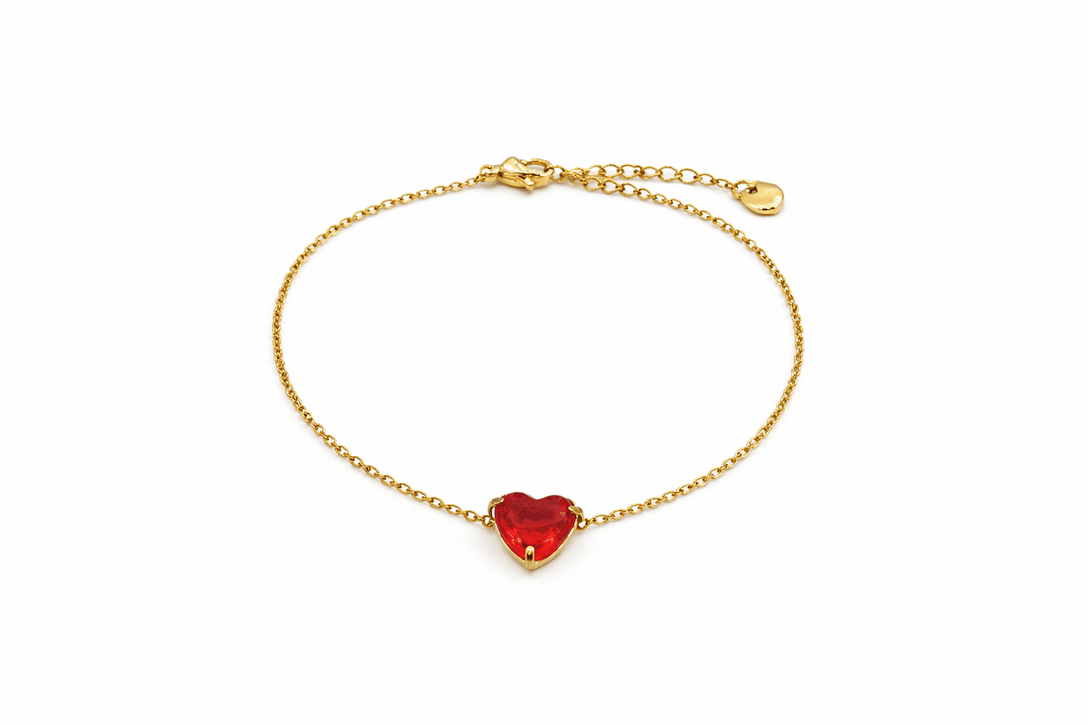 Βραχιόλι επιχρυσωμένο Κ14 με σχήμα καρδιά με πετρά κόκκινη ζιργκόν. Ένα βραχιόλι που θα σας εντυπωσιάσει ιδανικά για να το φοράτε σε κάθε σας εμφάνιση σε ανοξείδωτο ατσάλι υποαλλεργικο κατάλληλο για ολες τις επιδερμίδες.