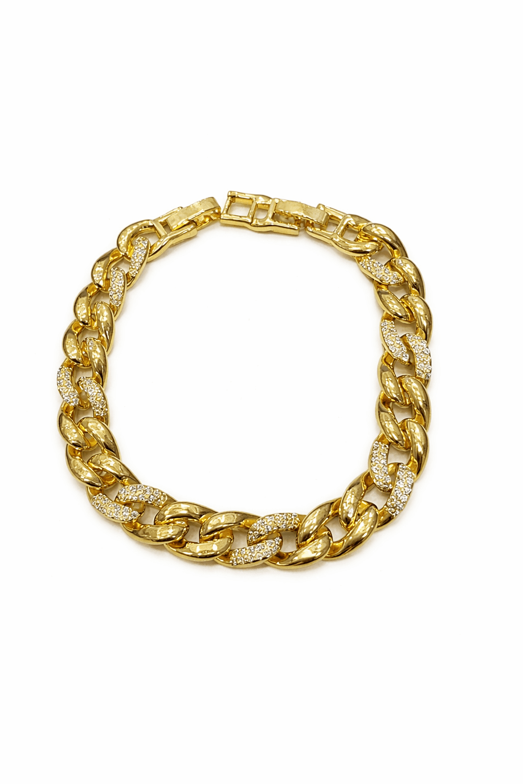 Βραχιόλι  επιχρυσωμένο Κ14 με λευκές πέτρες ζιργκόν. Ένα βραχιόλι που θα σας εντυπωσιάσει ιδανικά για να το φοράτε σε κάθε σας εμφάνιση σε ανοξείδωτο ατσάλι υποαλλεργικο κατάλληλο για ολες τις επιδερμίδες.