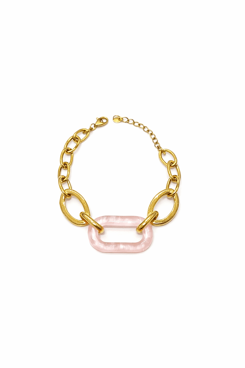 Βραχιόλι επιχρυσωμένο Κ14 με πέτρα στο χρώμα ροζ. Ένα βραχιόλι που θα σας εντυπωσιάσει ιδανικά για να το φοράτε σε κάθε σας εμφάνιση σε ανοξείδωτο ατσάλι υποαλλεργικο κατάλληλο για ολες τις επιδερμίδες.