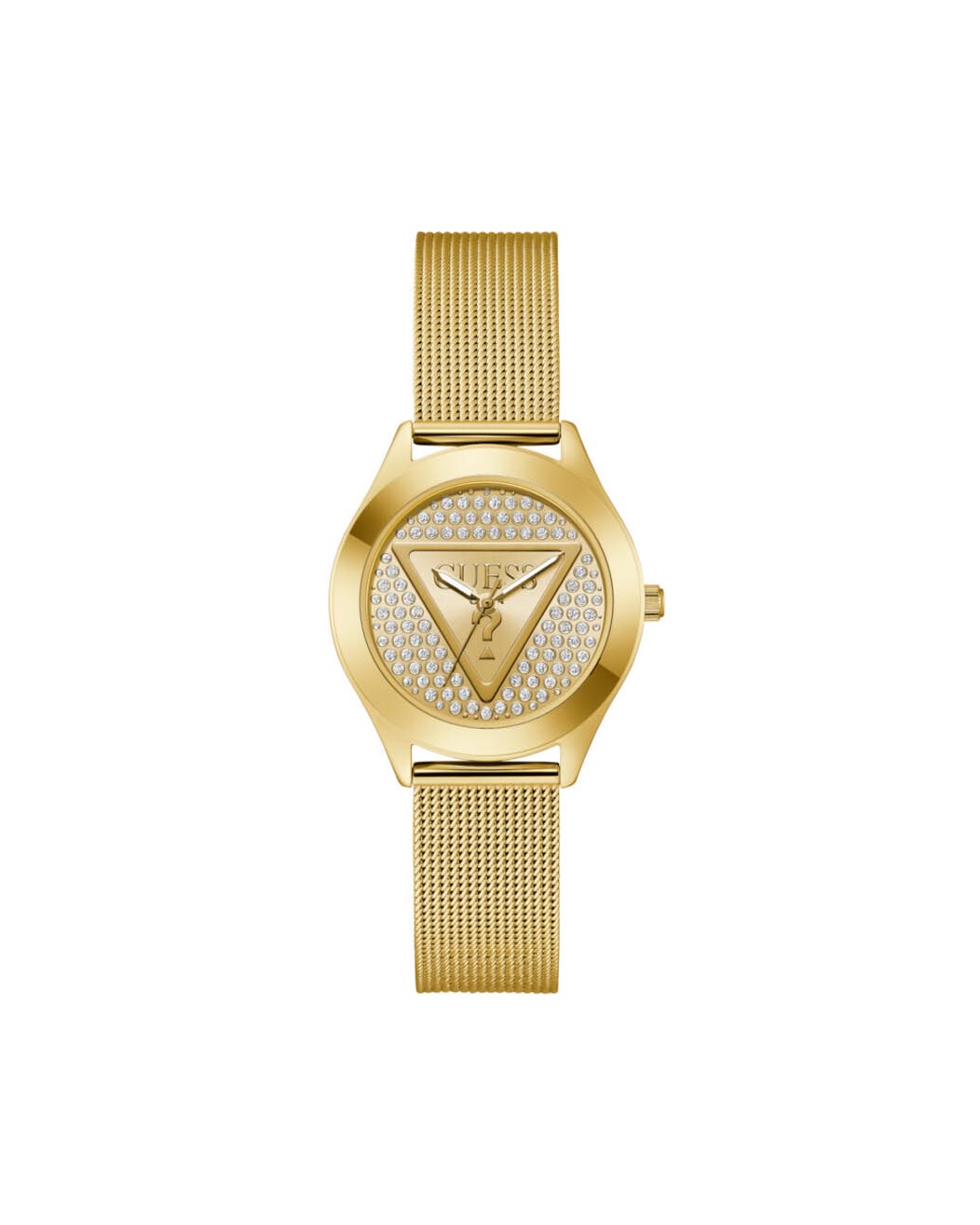 Γυναικείο ρολόι διαμέτρου 30mm με μηχανισμό QUARTZ ακριβείας. Έχει χρύσο καντράν με χρύσο τριγωνικό σχέδιο και χρύσους δείκτες και λεπτομέρειες. Η κάσα του είναι χρύση από ανακυκλωμένο ατσάλι. Έχει χρύσο μπρασελέ από ανακυκλωμένο ατσάλι και κούμπωμα κλιπ. Είναι αδιάβροχο (3 ΑΤΜ).