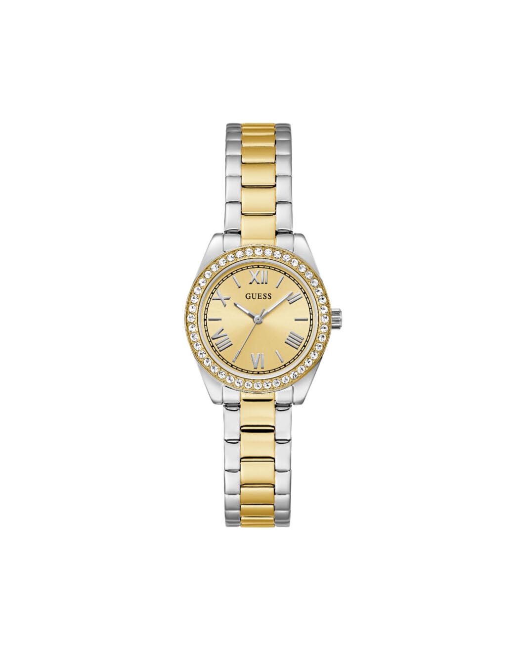 Γυναικείο ρολόι διαμέτρου 30mm με μηχανισμό QUARTZ ακριβείας. Έχει χρύσο καντράν με ασημένιους δείκτες και λεπτομέρειες. Η κάσα του είναι χρύση από ανακυκλωμένο ατσάλι με κρύσταλλο από ορυκτό κρύσταλλο ειδικής σκλήρυνσης. Έχει ασημέιο και χρυσό μπρασελέ από ανακυκλωμένο ατσάλι και κούμπωμα ασφαλείας. Είναι αδιάβροχο (3 ΑΤΜ).