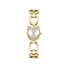 Αδιάβροχο γυναικείο ρολόι διαμέτρου 32mm με μηχανισμό QUARTZ ακριβείας. Έχει χρυσό καντράν με χρυσούς δείκτες και κρυστάλλους. Η κάσα του είναι μεταλλική, διακοσμημένη με κρύσταλλα και κρύσταλλο από ορυκτό κρύσταλλο ειδικής σκλήρυνσης. Έχει ασημένιο μεταλλικό μπρασελέ με χρυσές λεπτομέρειες και κούμπωμα ασφαλείας.