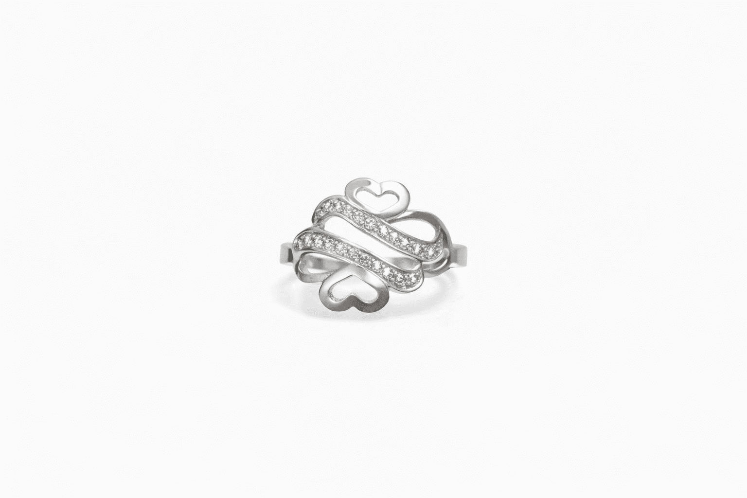 Δαχτυλίδι Λευκόχρυσο με καρδίες Καράτια 14 με λευκές πέτρες ζιργκόν με πολύ καλο δέσιμο που κρατεί τις πέτρες στο δαχτυλίδι οι πέτρες  είναι καρφωτές ώστε να μην φεύγουν ευκολά. Το δαχτυλίδι είναι νούμερο 56 και το βάρος του είναι  2.7gr και έχουμε την δυνατότητα να σας το φταίξουμε σε οποιοδήποτε νούμερο επιθυμείτε. Με κάθε αγορά σας παίρνετε γραπτή εγγύηση για τη ποιότητα και τα Καράτια του κοσμήματος.