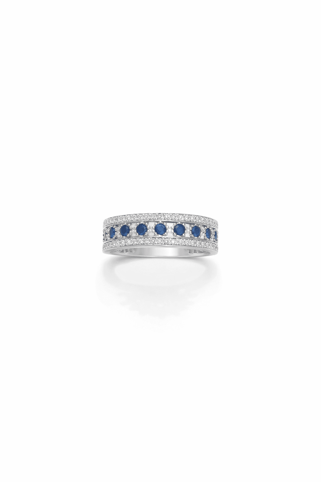 Επιπλατινωμένο δαχτυλίδι σειρέ Κ14 με μπλε και λευκες πέτρες ζιργκόν με πολύ καλό δέσιμο που κρατάει τις πέτρες. Οι πέτρες είναι καρφωτές ώστε να μην φεύγουν εύκολα, υποαλλεργικό ιδανικό για όλες τις επιδερμίδες ακόμη και για τις πιο ευαίσθητες επιδερμίδες.