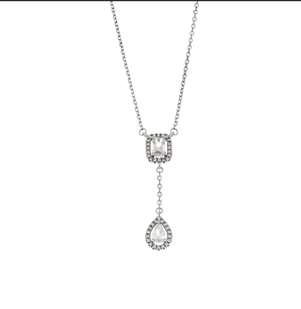 Ασημένιο κολιέ επιπλατινωμένο Κ14 με λευκές πέτρες ζιργκον. Οι πέτρες είναι καρφωτές ώστε να μη φεύγουν εύκολα. Ένα υπέροχο κόσμημα για να το φοράτε στη καθημερινότητα σας.