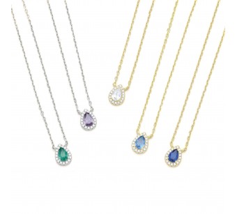 Ασημένιο Μενταγιόν σε σχήμα δάκρυ σε χρώμα μετάλλου ασημί, χρυσό Κ14 με χρωματιστές πέτρες ζιργκον ένα υπέροχο κομψό κόσμημα για να το φοράτε στη καθημερινότητα σας και με ασφαλές κούμπωμα στην αλυσίδα.