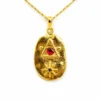 Ασημένιο μενταγιόν 925 επιπλατινωμένο Κ14 με λευκές πέτρες ζιργκόν γύρω από το ματι. Οι πέτρες είναι καρφωτές ώστε να μη φεύγουν εύκολα. Ένα υπέροχο κόσμημα για να το φοράτε στη καθημερινότητα σας στη τιμή περιλαμβάνετε και η αλυσίδα με ασφαλές κούμπωμα στην αλυσίδα.