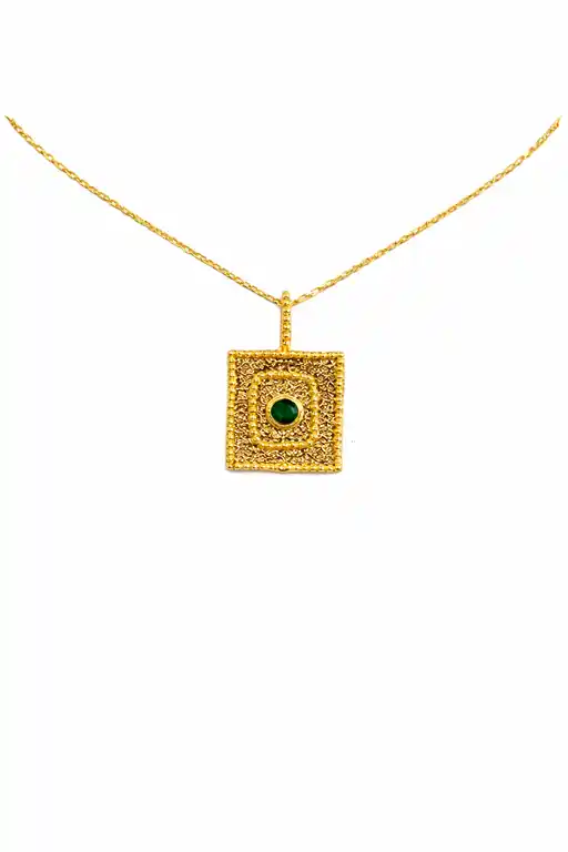 Ασημένιο μενταγιόν 925 επιχρυσωμένο Κ14 σε βυζαντινο στιλ με πράσινη πέτρα Ένα υπέροχο κόσμημα για να το φοράτε στη καθημερινότητα σας στη τιμή περιλαμβάνετε και η αλυσίδα με ασφαλές κούμπωμα στην αλυσίδα.