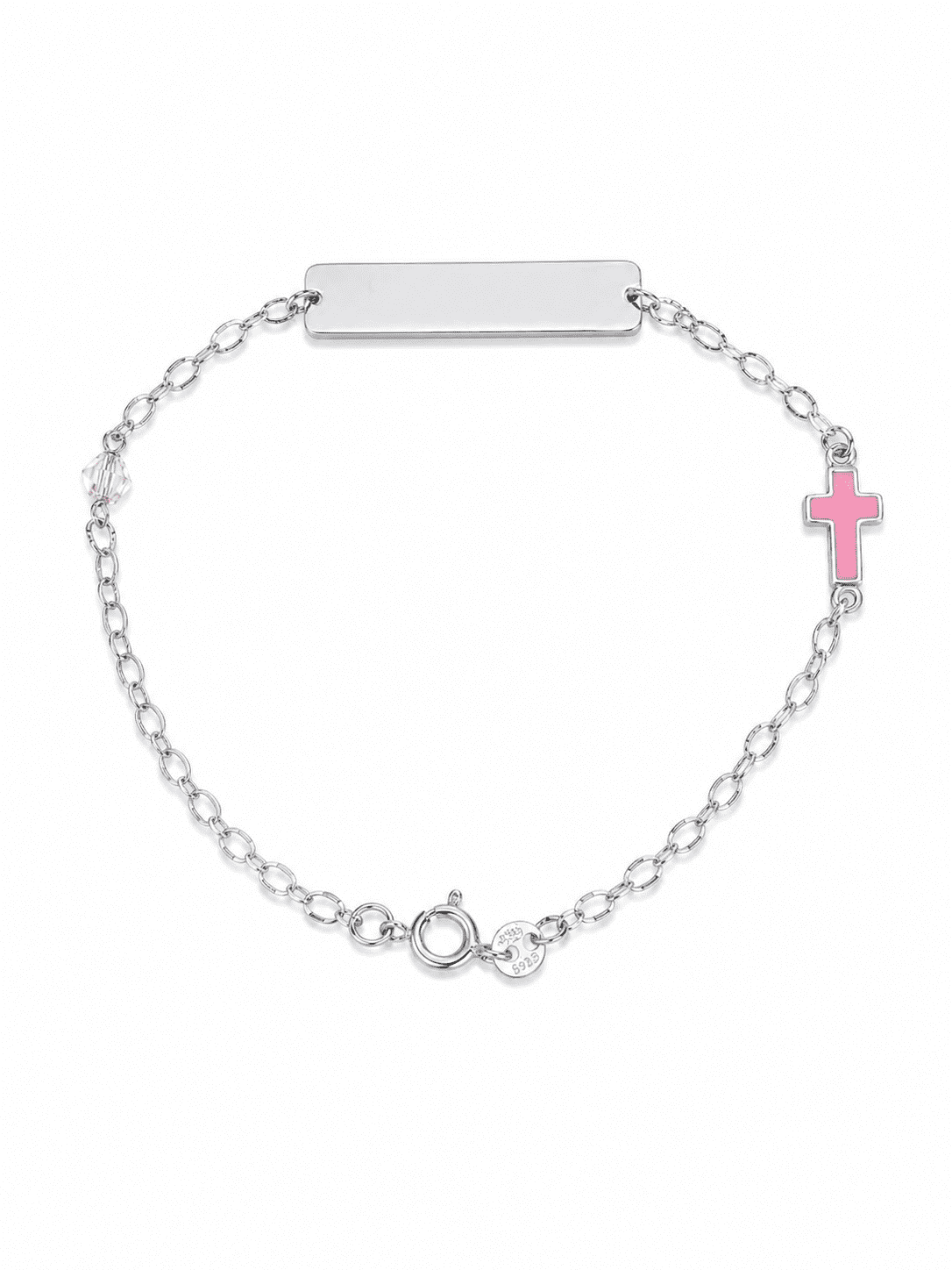 Ταυτότητα Παιδική επιπλατινωμένη  K14 με στοιχεία σταυρουδάκι ροζ, και ροζ ζιργκόν πετρά μπορούμε και να χαράξουμε αν επιθυμείτε. Ιδανικό δώρο για νεογέννητα και για όλες τις ηλικίες των παιδιών Υποαλλεργικό ιδανικό για την επιδερμίδα των παιδιών.  Σε όλα τα κοσμήματα μας παρέχετε γραπτή εγγύηση ποιότητας.