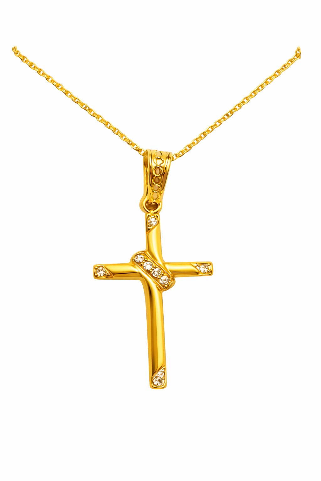Σταύρος χρυσός Καράτια 14  με λευκές πέτρες ζιργκον. Υπέροχος Σταυρος για να το φοράτε στη καθημερινότητα σας,
